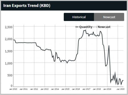 根据OilX的数据,预计伊朗的石油出口量在6月和7月将下降至每天约25万桶,这比制裁前的250万桶/天大幅下降,这将进一步加剧存储问题。