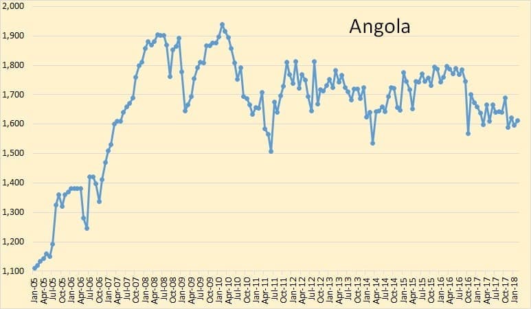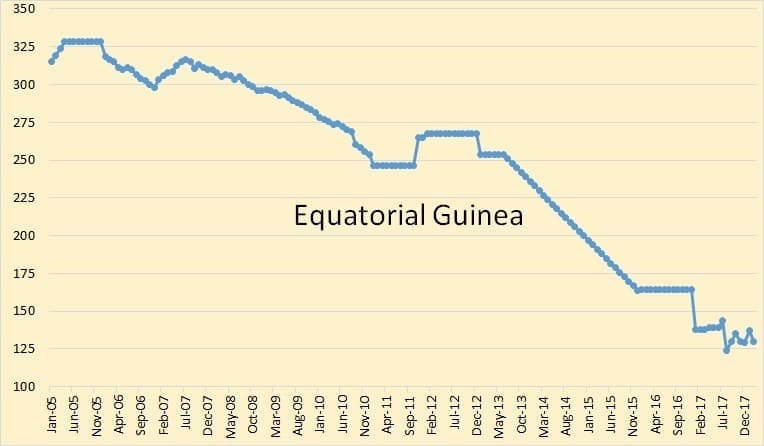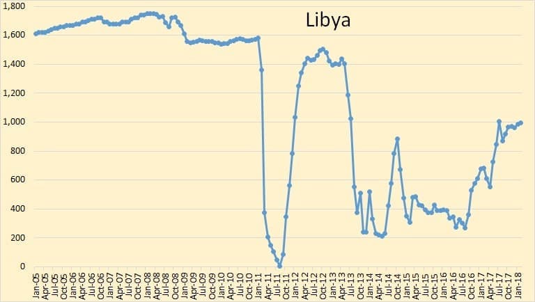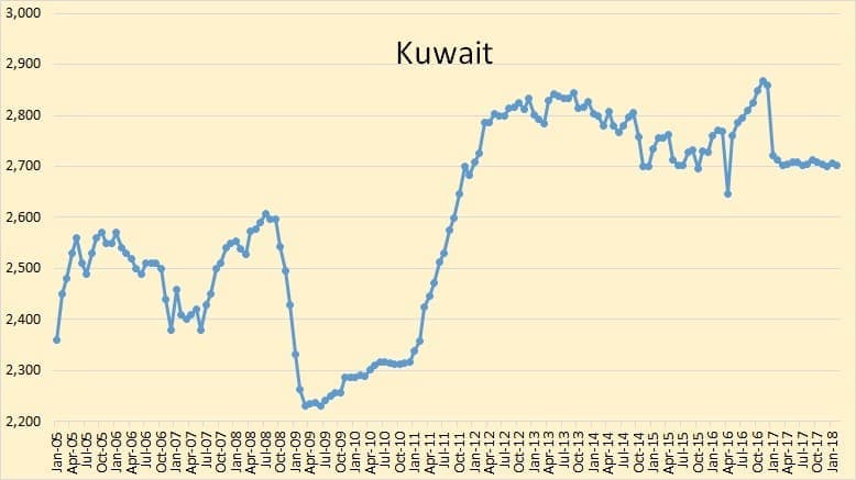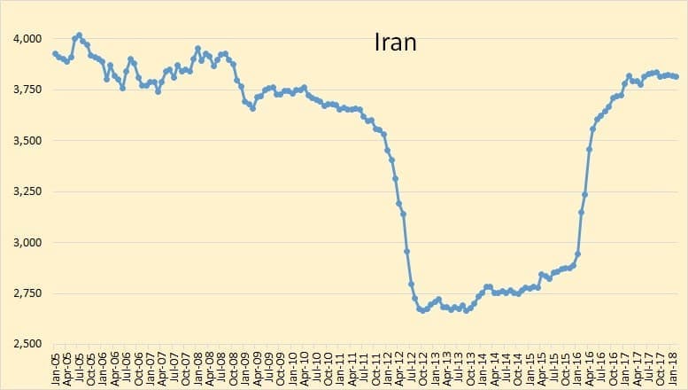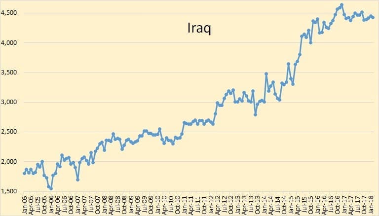 伊拉克是另一个似乎生产平淡的国家。他们在2017年的平均水平为每天4,441千桶。他们二月份的日产量仅比该数字低16,000桶。