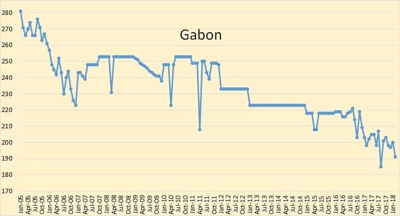 加蓬是发生率不高的低产国中的另一个。不知道他们为什么加入欧佩克。为了声望,我想。