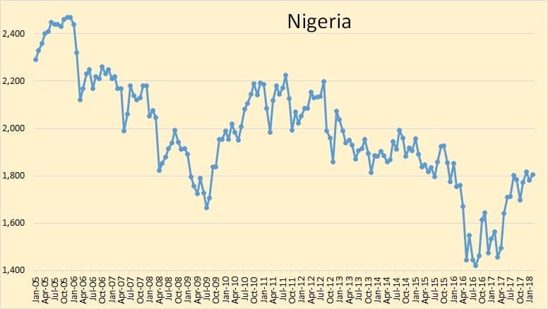 尼日利亚的情况似乎正在平静。他们的政治问题继续存在,但其石油产量稳定维持在每天约180万桶。