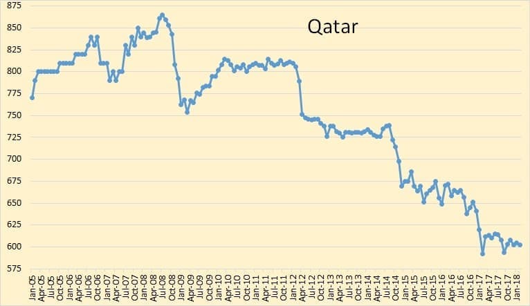 卡塔尔在2008年达到顶峰,此后一直在缓慢下降。