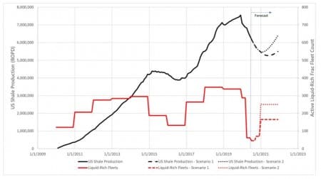 接下来,他根据先前的数据假设,要保持页岩气年产量约5.5毫米BOPD的水平,到2021年平均需要165个富含液体的车队,再加上30-40个富含气体的车队。这比当前水平低约2毫米BOPD,接近几个月前我所产生的估算值,因此进行了进一步的验证。