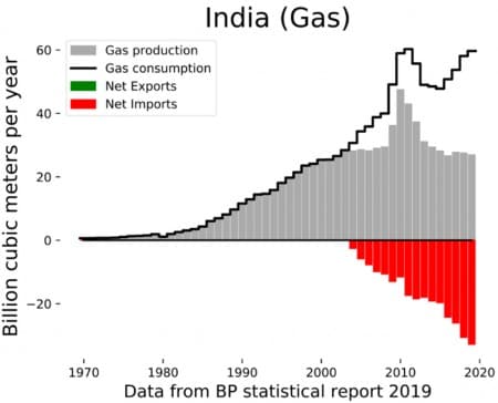 印度过分依赖外国生产者的“恐惧症”和气候变化的影响是造成这些野心的主要原因。需要越来越多的石油,天然气和煤炭来推动该国的发展。尽管印度生产一些石油和天然气,但对进口的依赖却大大增加。当价格高昂时,能源法案会对该国的贸易赤字产生负面影响。