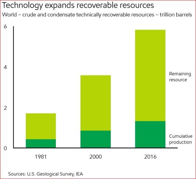 他们就是这样说的,我们留下了大约4.5万亿桶剩余的可采资源。