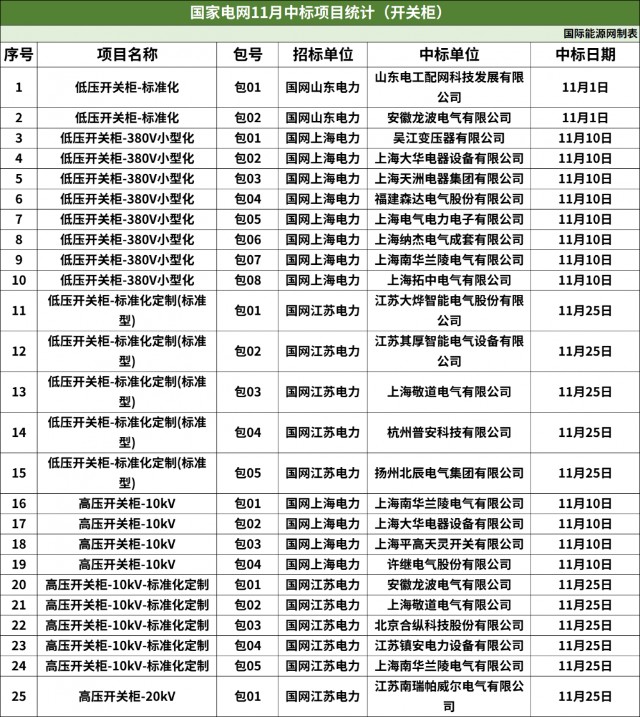 357包!亨通电力、中天科技等公司中标!国网11月配网设备汇总!